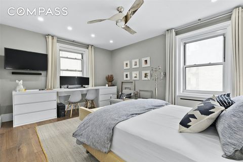 EXPAND YOUR HORIZONS & LIVE LARGER RENOVATED 1947 SPRAWLING CORNER CONDO BRIGHT & SUNNY, STRETCH-OUT STUNNER w/PERIOD DETAIL & ROOM TO GROW CONDO FREEDOM – FLEXIBLE LAYOUT – REMARKABLE STYLE & STORAGE You need more room – room to live – room to dream – room to grow. This sun-filled, cheerful, renovated, designer pre-war-style (1947), Mid-century condo home lives larger than most, and offers you the flexible expansion solutions you seek. Here is the feel-good, easy-to-love, pet-friendly, move-right-in, sunny stunner with high ceilings that is the ideal setting for today’s rich at-home demands: This is the large condo home where you can easily live bigger, work more efficiently, entertain most gracefully, exercise super easily, and recharge peacefully. Capturing a bonus guest area, having multiple workspaces, hosting big dinner parties, and creating effective, at-home gym time can all happen right here — this soulful condo has room for all of this and more. With the ability to create an oversized Bonus Room (ideal for a sizeable Guest Room, Den, or Office — see proposed alternate plan), this impressive, bright, mint-condition home is currently configured as the perfect jumbo one bedroom with remarkable closets (some walk-ins!) and storage. Here is your oversized condo sprawler with an impressive scale and two quiet, sunny exposures. Ideally and quietly situated in its well-run, pet-friendly, doorman building (offering resident manager, and laundry/storage/bike rooms) in the leafy, lively, and convenient West 50s, this is the hero home that has it all: -A designer windowed Kitchen with premium appliances by Wolf (w/vented hood!), Miele, & Subzero, big stone counters and ample custom cabinetry; -An oversized, swimming-in-sunshine, South-facing Living Room with gorgeous built-ins; -Two home office areas; -A practical foyer well-suited for a gallery; -A Dining Room opens to the large Living Room and right by Kitchen; -A sizable, quiet, sunshiny, king-sized Master Bedroom with two exposures and two big closets; -A renovated, customized, windowed Bath with custom-built vanity (with plenty of storage and integrated power) and a soaking tub with two rain shower heads; -And high ceilings and solid, restored Oak floors throughout. If space is your goal, a super-prime location (near Columbus Circle, Central Park, theatres, and destination shops and restaurants), is a must, and a crisp, clean, fresh, inviting home in a well-served, pet-friendly, 1940’s condo building is a priority, then this ready-to-move-right-in residence is a customized must-see. This is the midtown home you’ve been hoping would materialize – a super roomy, designer home with style – a happy condo home with grace – a home that will stylishly serve your growing needs. Come melt your heart – come expand your horizons – come home.