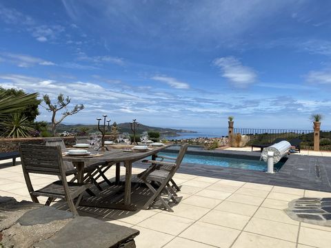 On the heights of Banyuls sur mer, with a panoramic view of the sea and the mountains, in a 2 ha property on a classy site protected by a juniper forest, come and discover an exceptional farmhouse close to 300 m² comprising: 5 bedrooms, two of which are 25 and 26 m², 2 bathrooms, 1 living room with open plan kitchen of 67 m², 1 large hall of 65 m² with Corten steel glass roof and green roof, 1 office of 23 m² with mezzanine, 1 sports room of 16 m² with sea view, 1 garage for 2 cars, 1 workshop and other outbuildings (possibility of an apartment on the ground floor of 85 m² with 3 bedrooms with showers and WC and living room-kitchen) . The farmhouse benefits from a stone fireplace with forced air, reversible air conditioning and double glazing. You can enjoy a 7.5 x 3.5 heated swimming pool with SPA, a travertine hammam with shower and WC and a huge terrace with panoramic views, a barbecue, a plancha and a pétanque court … The property has a borehole, a reserve for collecting filtered rainwater, an automatic sprinkler system, a stable with electric fence, a henhouse and also a videophone with digital code and remote control, an alarm with detections and cameras. This exceptional place is unique: a visit is essential.