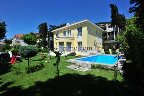 A beautiful two-storey villa of 250 m2 for sale, located in a quiet and residential part of the city of Split, only 200 meters from the sea. The villa is located on a plot of 600 m2 and has a partial sea view. The ground floor has a living room with kitchen and dining area, cabinet and bathroom. From the dining room you enter the covered terrace with barbecue. On the first floor there are four bedrooms and a bathroom. Two bedrooms have access to a shared terrace with beautiful open views of the sea and the surrounding area. The villa has a basement of 20 m2 with a separate entrance, where it is possible to equip a space for relaxation and exercise with a sauna or tavern. The villa is surrounded by a landscaped garden with a swimming pool of 30 m2, sun deck and parking for 3-4 cars. It is possible to increase the villa by two more floors.