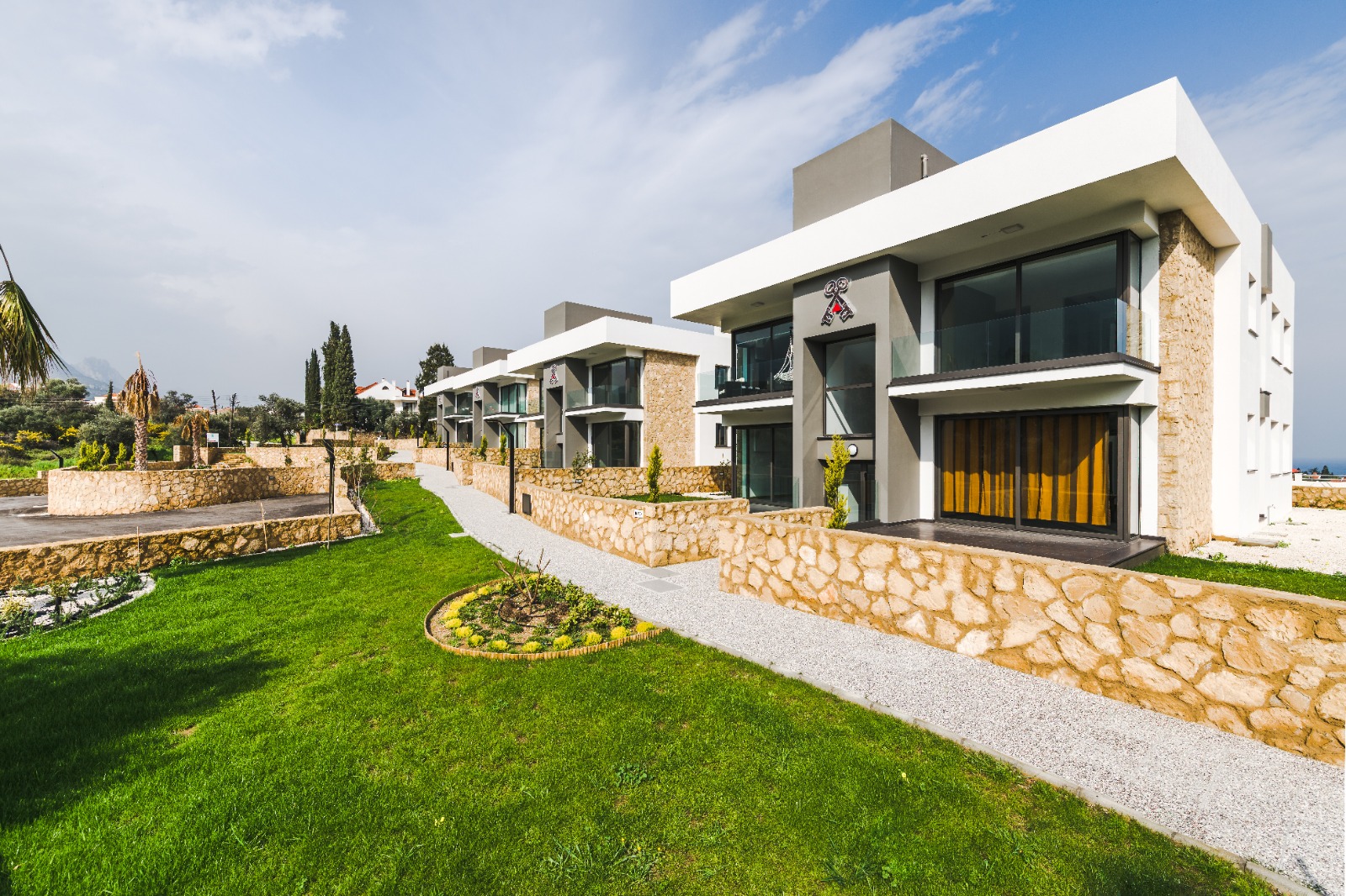 in Bellapais,the pearl of Kyrenia, we offer you a new living space with a mountain and sea views.Our project consists of a total of 16 apartments and each block hosts 4 apartments in total, 2 on the ground floor, 2 on the upper floor. Our ground floor apartments have private front and side gardens and our upper floor apartments have private roof terraces.