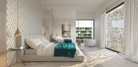Adjacent to the infinite pool is a chill out area, leading into a solarium, surrounded by lush vegetation and secluded under a porch of geometric shapes.