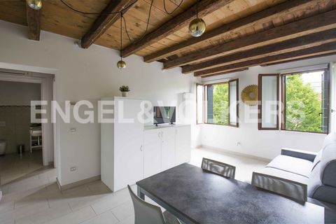 This splendid apartment is located on the second and third floor of a Palazzetto that has recently been completely renovated and equipped with every comfort. The apartment offers a bright living room with kitchenette overlooking a romantic tree-lined garden, an elegant double bedroom and a large bathroom with shower. Upstairs we find an attic space that can be used as a guest suite or as an independent apartment. The whole apartment has been completely renovated in 2015 maintaining the typical Venetian details such as the wonderful exposed beams and equipped with air conditioning, video intercom, security door and condominium septic tanks. If you are looking for real estate agencies Venice that can support you in buying or selling your property, Engel & Völkers is the right choice.