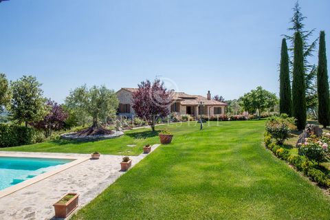 The property is located 2km from the town in open countryside, with panoramic view of the village of San Venanzo. This exclusive farmhouse with an area of over 300sqm on two levels is composed as follows: on the ground floor, large bright living room with fireplace, large kitchen, hallway, three bedrooms, one with a mezzanine, two bathrooms and two porches. In the basement, there is an agricultural tool shed, four cellars, closet, technical room and bathroom. Very well-kept park of 7.200sqm, fenced and with automatic gate, olive grove with 60 olive trees, truffle land in production, 5x12m swimming pool with changing room and bathroom, carport with 6kw photovoltaic system and warehouse.