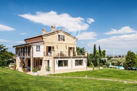 This very recently restored farmhouse for sale in Marche has been planned as a holdiay home with plenty of accomodation for Summer rentals. The house has been divided into three spacious and luminous flats. On the ground floor there is a two bedroom flat and a one bedroom flat and both have kitchen diners. Covering the second and third floor there is another independent flat with 4 bedrooms, 3 bathrooms, a drawing room, a separate kitchen and large terrace. The very well maintained gardens include a stunning panoramic infinity pool (13.5 m x 6.5 m) with gazebo and an old pizza oven which can be restored. The garden is surrounded by 1.43 ha of arable land, 70 olive trees. In the field adjacent to the house, but lower so as not to ruin the view, there are photovoltaic panels that provide a revenue of €18.000/annum sold directly into the grid and a geothermic plant. The small solar panel plant is for sale for an additional sum.