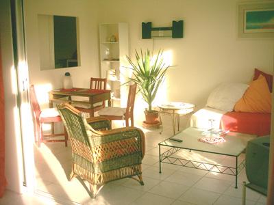 • A pleasant lounge with a table, a sofa (bed for 1 person), tv, dvd, cd player