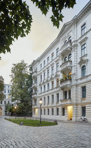 The baroque-revival complex of buildings with its decorative style elements is one of Berlin’s heritage sites. With lavish attention to detail and the diligence of a heritage curator, buildings and outside facilities have now been largely restored to their erstwhile splendour. The sublime façade presents itself with bright structures whereas the staircases inside are dominated by warm earthy colours. Doors, windows and handrails were also overhauled and pay homage to the original designs. Partially uncovered frescoes recall the aesthetics of bygone times.