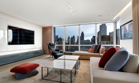 THIS FULLY FURNISHED 5 BEDROOM, 5.5 BATHROOM + GYM INSIDE OF THE UNIT !!! This turn-key 5 BEDROOM, 5.5-BATHROOM masterpiece perfectly blends contemporary design with classic sophistication. The floor-to-ceiling windows throughout the 4,134 square foot apartment showcase view that stretch from the Hudson River across the New York skyline and will take your breath away. The apartment has been renovated to perfection by MSK Design who worked closely with DeBono Brothers Builders and Developers to create this unique residence. The living and dining spaces are sun-drenched and stunning, with a luxurious leather-paneled lounge area. Every detail was chosen to maximize space, beauty, and comfort, from the grain leather of the Hermes-inspired custom leather closet to the calming gray of the handcrafted wide-planked smoked oak floors. Enter the apartment through the grand hall which is ideally configured for an art collection and leads to the textured, travertine gallery, a work of art in its own right. The Boffi kitchen is fit for a celebrity chef, with Giorgio Armani limestone flooring, graphite oak interiors, solid Calacatta counters and backsplash, all Miele and Gaggenau appliances. The majestic master bedroom features closets by B&B Italia, nominated for “Best Wardrobe” at the Wallpaper Design Awards, and a high-tech rotating flat-screen divider. The window treatments are made of pure Rogers and Goffigon wool, and the lighting was designed by Belgian manufacturer Delta Light to maximize energy efficiency. The home is equipped with Crestron Smarthome technology with central control for climate, lighting, and electric shade system. The central air and humidification system is comprised of 6 zones each controlled by separate thermostats for optimal comfort. The Grand Millennium is a five-star doorman building with valet parking and 24-hour security. It is conveniently located next to Equinox Sports Club with its world-class facilities including a swimming pool, fitness classes, spa, etc., and steps from Lincoln Center, with all of its varied cultural offerings. Lincoln Square offers an engaging ensemble of schools, dining, the arts, and shopping, along with being anchored by the world-renowned Lincoln Center for the Performing Arts. It exudes class, style, history, and classic Upper West Side charm as it blends pre-war architecture with modern luxury high-rise buildings.