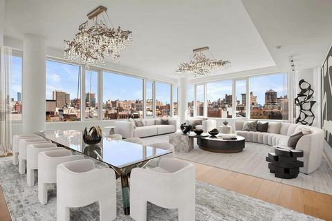 NEW: RARE Haute-Couture High-Floor Loft in MINT condition-Live on a high floor with the sun and above the historical SoHo district with spectacular views and the privacy you deserve. This entirely renovated triple exposure full-floor residence is a jewel in the sky of lavish proportions. The unobstructed feel of the NYC skyline but also downtown at heart, overlooking the SoHo water tanks, this one of a kind residence boasts 3 bedrooms brilliantly distributed with each their own en-suite full bath, heated floors, a separate powder room designed by artist Chantel Martin, and top-end finishes from top to bottom. The main bedroom features a double South/East exposure with a balcony, a private dressing area filled with natural light, and leading to the Spa’s corner through heavy wooden yet perfectly sliding doors. This area is swathed in hand-selected statuary Carrara marble slabs and composed of a deep soaking tub, double vanity, large steam shower with a bench, and heated floors throughout. Flawless living, dining, cooking, cheering, and entertaining with over 70 feet of linear windows,10’7″ ceiling heights, entirely wired for sound, cinema, home automation system monitoring blinds, shades, lights, and separate AC zones and heat throughout the residence. Private laundry room and so much storage available. One of the most exclusive downtown addresses and architectural masterpieces designed by Moed de Armas & Shannon and interior design by renowned architect Willliam T. Georgis. Developed by luxury builders and iconic art collectors A. Rosen and M. Fuchs at RFR. Not just another fine home. Currently tenant-occupied, private showings upon request and by appointment only.