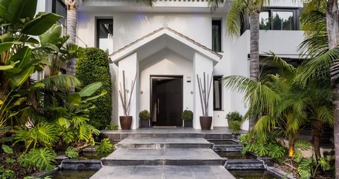 About 300 meters from what is considered the best beach in Marbella, this contemporary-style villa completely renovated with the best materials and first quality brands is designed to the last detail to turn this oasis of privacy, surrounded by palm trees and tropical vegetation, into a luxury residence for the most demanding of taste. The exquisite integration between the interior and exterior spaces, the large windows and the design of the garden with the pool and barbecue leisure area.
