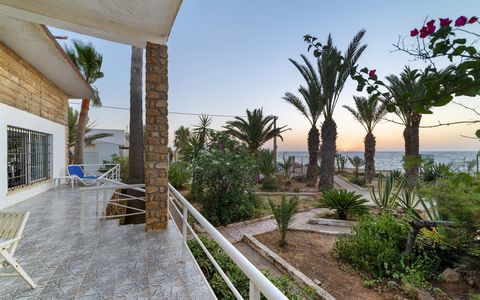 This beach house has a covered terrace at the front of the house and a large patio on the other side. There is a front garden with mature palm trees and a fantastic sea view.