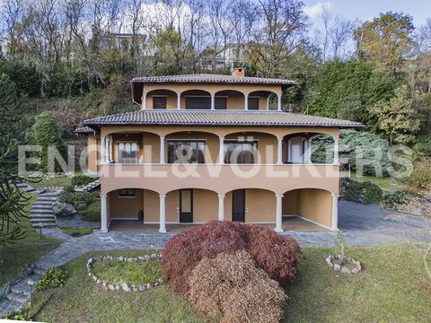 In the municipality of Clivio, in a green area on the border with Switzerland, a villa of about 370 sqm commercial built in 1975 and designed by the still current owners is offered for exclusive sale. The property is spread over three floors and the main facade is characterized, on each floor, by arches that frame the landscape at different heights and that hint at the great love for the location and the view. The ground floor is completely dedicated to the service areas and we find the double garage of 43 square meters, the cellar, the laundry room, the technical room and other storage rooms. On the first floor there are both the main rooms, such as the entrance, the living area with a living room with fireplace, kitchen and dining room, and the sleeping area, consisting of two bedrooms and three bathrooms. Finally, the second floor, which has a floor area of about 45 square meters, consists of a large bedroom and a bathroom and, through sliding windows, it is possible to access the comfortable external porch. The portico and the arches are certainly the most characterizing elements of this project, as they are present on all three floors. Internally, the finishes and systems are those of the time of construction, the columns and thresholds are in local Viggiù stone while the parquet on the second floor is in olive wood. Outside, a large garden of about 5,500 square meters adorned with plants and flowers frames the villa.
