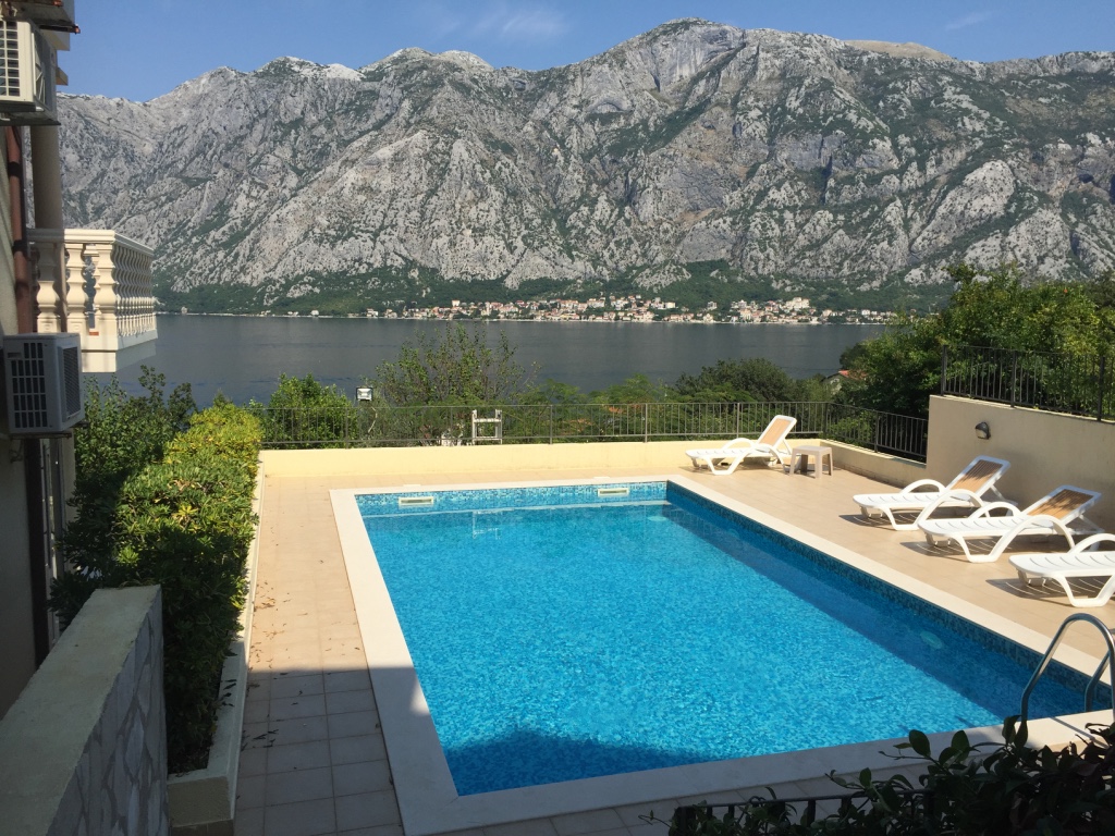 This exceptional apartment is situated in a stunningly beautiful location, seamlessly integrated into the natural landscape of a traditional fishing village. The residence features two expansive floor-to-ceiling glass concertina doors, which open onto a spacious balcony, effectively merging indoor and outdoor living. The balcony, adjacent to the communal pool, overlooks the magnificent Boka Bay, providing a constant backdrop of unparalleled beauty. The apartment’s design maximizes the panoramic views, encompassing both the majestic mountains and the shimmering sea.