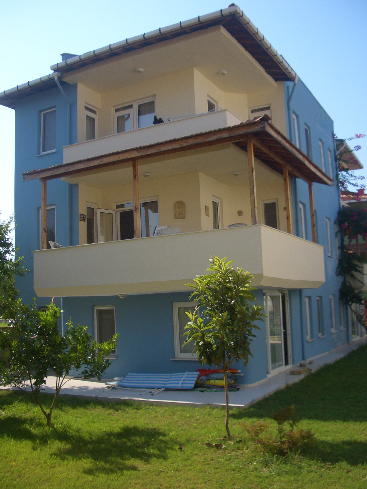 Triplex Property fully furnished can sleep up to 15 at a push. The top floor consists of a Sun terrace with Sunbeds and access to loft storage, also a solar hot water tank.