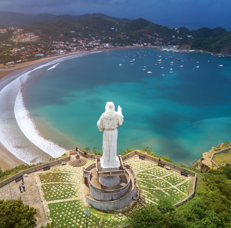The lifestyle in San Juan del Sur is centered around its thriving surf culture and a deep connection to the ocean. The town’s main beach is a social hub, perfect for sunbathing, swimming, and watching fishermen bring in their daily catch. Just a short drive away are numerous famous surf breaks, such as Playa Maderas and Playa Hermosa, which attract surfers of all levels. Beyond the beaches, the town offers a lively mix of restaurants, bars, and cafes, along with wellness-focused activities like yoga retreats. A prominent landmark is the towering Christ of the Mercy statue, which overlooks the bay and provides a stunning vantage point for sunsets.