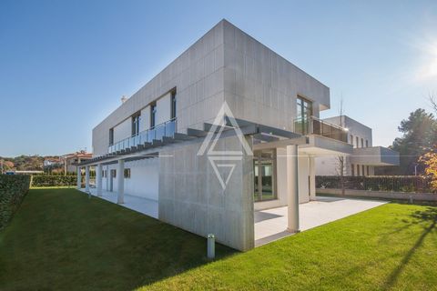 The ground floor, measuring 210.18 m2, contains a wide hallway, a kitchen with a dining area, a large living room with access to the terrace and a fenced garden decorated with vegetation and automatic watering.