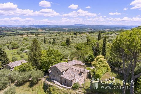Renovated farmhouse with a guest house and a 700 sq.m garden crossed by a small brook. With a net saleable area of 300 sq.m, this farmhouse includes 4 rooms and 4 bathrooms besides the living area. Panoramic position on the rolling green Tuscan hills.