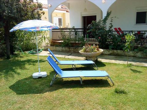 The location of the house is 40km from Athens, 5 km from the port of Oropos. Full air conditioning to all rooms. The garden is full of grass and has Trees such as apricot, cherry, walnut, fig, plum, quince, raspberry, vines, lemon, bitter, apple trees. Also flowers such as rose trees, evening primrose, oleander. The Parking is for 2 cars.