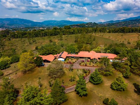 This spectacular hacienda-style mansion was designed for private entertainment. It is located at 800 meters over sea level in the beautiful town of San Isidro del General, at about one hour distance from the beaches of Dominical, in the South Pacific Coast of Costa Rica. The main house is surrounded by mature trees, colorful bougainvilleas, and all kinds of palm trees, and lush tropical gardens.