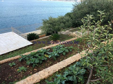 For sale is a beautiful house located on the north side of Čiovo. From here, one of the most beautiful sea views is provided. Detached house of 140 sq.m.consists of two floors. The ground floor has a living room, a kitchen and a storeroom, while upstairs there are three bedrooms, a bathroom and a balcony with panoramic views. The house is located on a plot of 1800 sq.m.and is surrounded by a nicely decorated outdoor area with Mediterranean plants (citrus fruits), terrace and barbecue. It also has a 20 sq.m.garage and a storage of the same size beneath. The sea is just a few steps from the house and it is accessible by stairs. The whole plot is building land so it is possible to build two more modern villas. It is possible to buy neighboring plot of 1200m2 for 500 euro/m2.