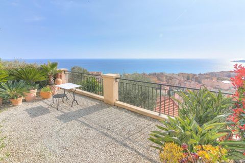 Semi-detached house offering a vast terrace with breath-taking panoramic views of the city of Menton, the sea and Cap Martin. Located in a quiet area close to Menton’s town-centre.