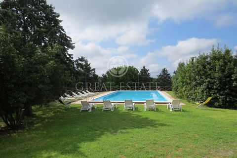 This beautiful property is located in the municipality of San Venanzo, near a small village within walking distance to a gorgeous natural park and an exceptional restaurant. The farmhouse measures to 430 square meters and includes two side porches, each 75 square meters, as well as a technical room. The property is completely fenced in, surrounded by approximately 2.4 hectares of land, with large trees, a 16 x 7 swimming pool, and a natural source of mountain water which can be easily reconnected. The farmhouse is composed of two levels. The ground floor consists of 2 separate wings that are connected to one another, and french doors that lead to the exterior of the house. The first wing can be accessed from the main entrance, or the side entrance under the porch. You will find a living room with a large fireplace, and a bedroom with private bathroom. In the living room, there is the possibility to add a kitchenette, making it an independent apartment, or you can connect the living room with the adjacent wing for a larger single apartment. The second wing can be accessed from the left porch, or from the main entrance. Here you will find a hallway, a kitchen, a dining room with fireplace, and a lounge/living room with central arch. In the central hallway, there is a staircase leading up to the second floor, where you will find 4 bedrooms and 2 bathrooms. It is possible to create two additional bathrooms so that each bedroom can have its own private bathroom. The property offers a spectacular view of the hills and mountains, with green forests and tall trees, cool in the summer and dusted with snow in the winter.