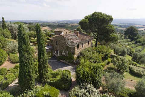 The farmhouse for sale is surrounded by a lush romantic garden where there are pergolas of yellow roses, small lavender plants, roses and hedges. There is also an abundance of medicinal plants that are the backdrop to the charming swimming pool. The farmhouse enjoys a unique view of the rolling hills of Tuscany. At night the property and its garden come alive thanks to the various lights that make this an even more magical location. The farmhouse is in a very good condition both externally and internally and is about 410sqm in size on four levels: The ground floor has a spacious entrance hall, two large living rooms, one of which has a wonderful fireplace and overlooks a charming pergola. From the entrance, a few steps leads to the slightly higher levels: -A kitchen, a dining area with a beautiful, antique fireplace and a large window that has a breathtaking view. The kitchen leads to another impressive pergola. -The first double bedroom with ensuite bathroom -On the other side of the wall there is a hallway that leads to two bedrooms (each with owns bathroom) On the first floor there is a fourth bedroom with ensuite bathroom and in the basement there is a spacious garage, all technical areas such as the boiler and autoclave, and a hallway that has access to a laundry room and a characteristic cellar. The enjoyment of the garden and the views is favoured by its terraces and pergolas. There is also a stunning swimming pool, as well as a landscaped garden of 6,800sqm.