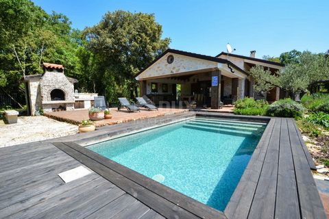 Located on the west coast of Istria, Rovinj is today one of the most developed tourist destinations in Croatia. Also known as one of the most picturesque and romantic cities in the Mediterranean, Rovinj has been attracting a large number of tourists for decades, and most of them faithfully return year after year. Near Rovinj there is a beautiful villa with pool, located in a unique position. It is located on an area of 4369 m2, filled with aromatic Mediterranean plants and surrounded by olive trees. The villa has a self-sufficient water source and a solar system to generate electricity and water heating. The ground floor of the villa has a beautifully decorated living room and dining room and a well-equipped kitchen with rustic elements. There are also two bedrooms on the ground floor, each with its own bathroom, while the upstairs gallery has another bedroom. There is an outdoor kitchen on the covered terrace. The pool is surrounded by a wooden terrace and Mediterranean vegetation and is the perfect place to enjoy the benefits of this peaceful location. There is also a beach volleyball court, basketball, badminton, five-a-side football and table tennis. ID CODE: 12170 DUX Labin Mob: + 385 92 106 5592 Tel: +385 99 640 8438 E-mail: info@dux-istra.com http://www.dux-istra.com Iva Zajc Agent s licencom Mob: +385 92 235 9472 Tel: +385 99 640 8438 E-mail: iva@dux-istra.com http://www.dux-istra.com