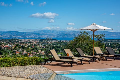 The second level, where it is the main entrance and the main area of the property, consists of a comfortable living room with a fireplace, a dining area, and a fully equipped kitchen that is sun-drenched all day long. A large covered terrace waits for you to enjoy the panoramic view of Corfu and the Ionian Sea.