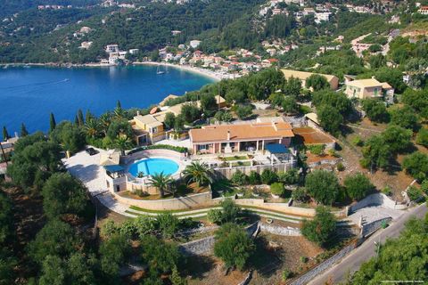 Before entering the courtyard of the house, there is a spacious car park with a covered area. The house has a garden on three sides and a circular swimming pool in its exclusive use. Next to the pool there is a very sunny area for sunbathing and offers a wonderful view, almost everywhere, there is very good privacy while from everywhere, there are excellent views over the sea and the bay of Kouloura.