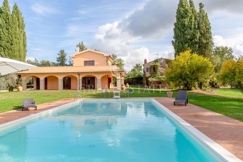 80’s villa of 200sqm on two levels with large porch on the ground floor and large terrace on the first floor, all recently renovated with park, tennis court, swimming pool and farmhouse of 180sqm on . The villa and the swimming pool have been recently refurbished. The villa on the ground floor is divided into living room, dining room-kitchen, three bedrooms, two bathrooms, closet and chapel, all for a total of approximately 200 sqm. The villa is bordered on two sides by a large porch. Polished and treated terracotta floors (top quality majolica) doors and windows in solid walnut. The penthouse on the first floor has an independent access from the common courtyard with both external and internal staircases. The penthouse is divided into living room with kitchenette, bedroom, bathroom and two closets, for a total of 105 sqm. Internal and external finishes similarly on the ground floor. The building, as a whole, has a pleasant architectural and formal aspect and fits well into the environmental context. The ancient farmhouse consists of two apartments, on the ground floor and on the first floor with independent access from a common courtyard and with one side joining and bordering with other properties. The facades are made of stone, terracotta floors, bathroom and kitchen with top quality ceramic tiles. The ground floor apartment is divided into a living room with kitchen, bathroom, two bedrooms, for an area of approximately 105 sqm. The first floor apartment is divided into living room, dining room, kitchenette, two bedrooms and bathroom, for an area of approximately 105 sqm. The farmhouse has enhanced the peculiarities of a country house, highlighting, through a sensitive recovery, the structural, material and architectural elements that give the building the known characteristics of the classic Tuscan farmhouse. Underneath the courtyard at the rear of the villa in the basement, a single room was created, with attached technical spaces or rooms used as a cellar.