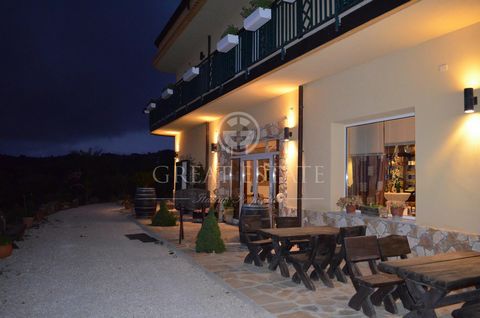 This villa, currently used as holiday home, is immersed in greenery, less than 1 km away from the town of Alia, about 30km away from the sea. The villa, on 2 levels, is composed as follows: at ground floor, large living room with closed fireplace (connected to the radiators), with access to a covered terrace with 50 restaurant seats and outdoor area with more than 100 seats, bathroom for disabled persons, 2 bathrooms for women and 2 bathrooms for men, professional restaurant kitchen with bathroom for the staff and latest-generation non-stop cycle wood burning oven, 2 service rooms, storage, laundry room, large garage of 50sqm and outdoor closed parking area and play garden; predisposition for elevator; on the first floor, we find 2 large apartments (one of 75sqm and one of 90sqm), both with panoramic covered and uncovered terrace, and 4 mini-apartments (from 30 to 45sqm) with bathroom and internal/external access. The property is provided with 2 wells, solar thermal energy (production of 860lt of hot water) and heating system fuelled by LPG with outdoor tank. The surrounding land covers an area of about 10.000sqm, with 500 plant vineyard, 170 olive trees, orchard, palms and several plants and flowers.