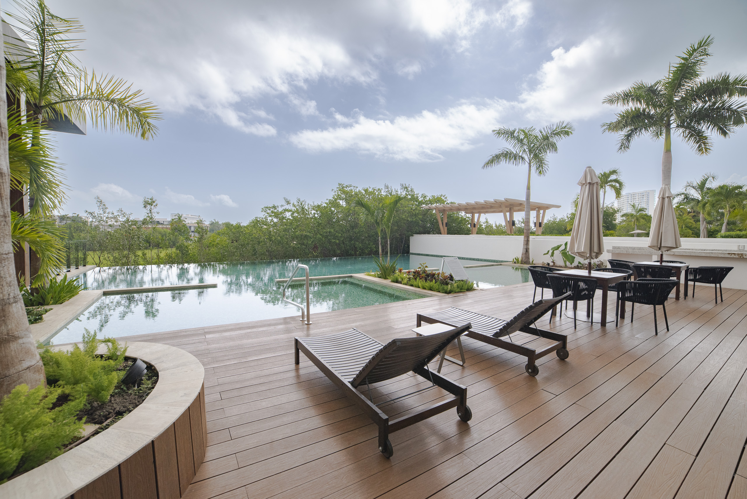 - Community Amenities: The Puerto Cancun complex offers a wide range of amenities for residents to enjoy, including family and adult pools with grill and sunbathing areas, a pool for little kids with a playground, a spa with a Jacuzzi and massage beds, seniors and juniors lounges, a multipurpose area for events, a business center, and a gym.