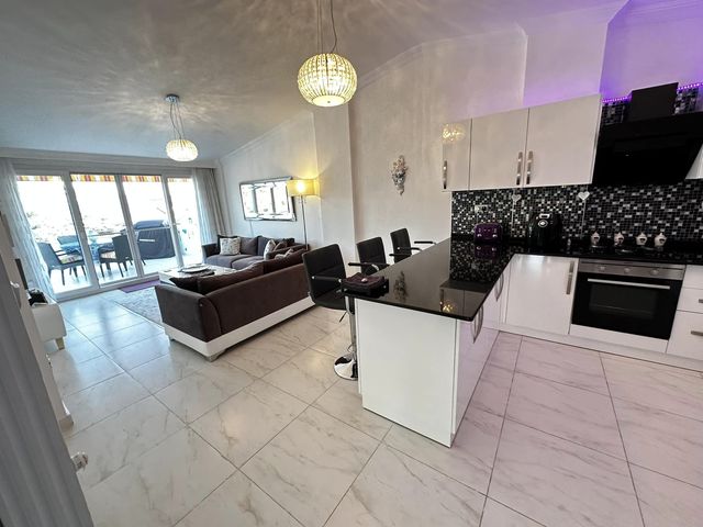 Kitchen 10Sq m. to include, an extra wide breakfast bar with 3 chairs, oven hob, dishwasher, fridge freezer, water dispenser, kettle, toaster and air fryer along with numerous kitchen utensils etc.