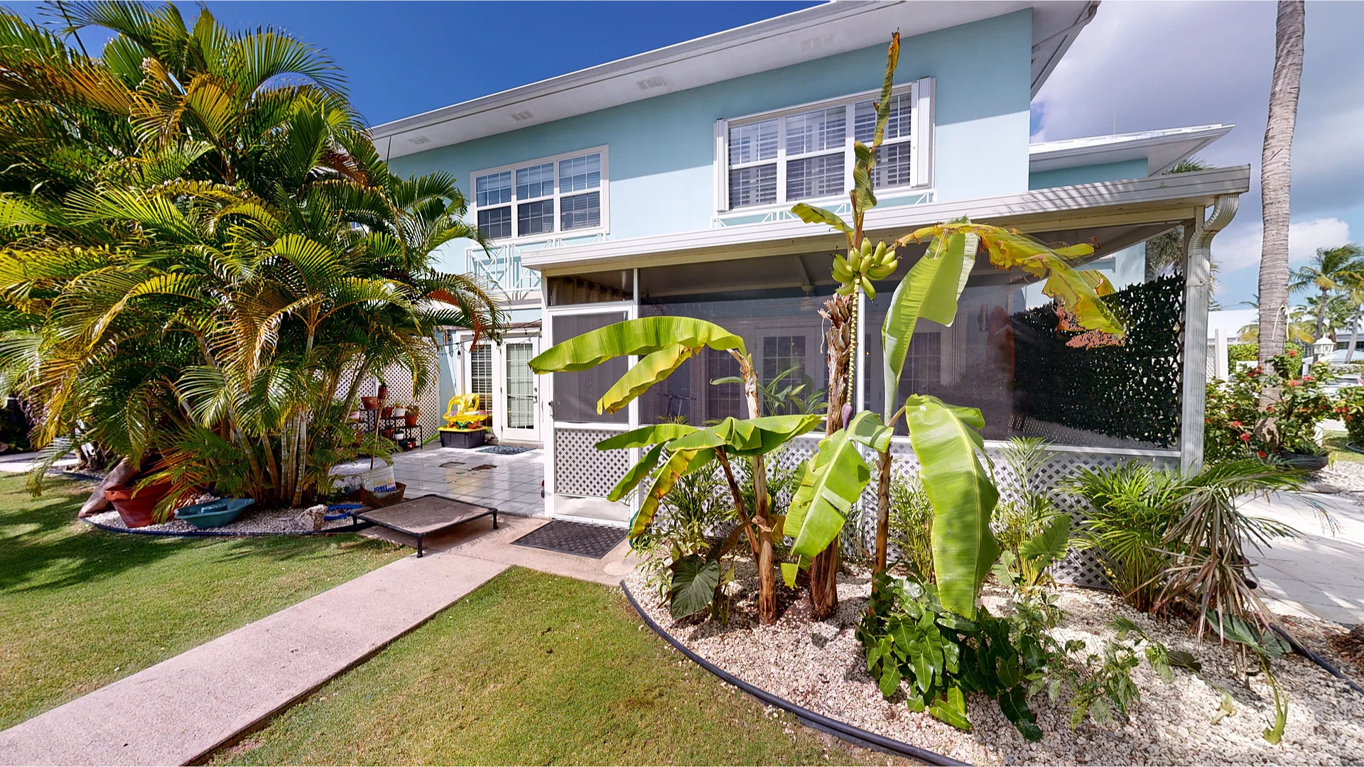 Impeccably updated kitchen featuring stainless steel appliances and ample cabinetry storage. Convenient large capacity front loading washer dryer for your laundry needs. Gather around the spacious kitchen island with 3 stools, perfect for casual dining or entertaining guests. Relax in the bright and airy living room, leading out to a screened-in patio where you can enjoy the island breeze. Need a quiet workspace? The main floor office/bedroom with ensuite bathroom and sliding barn door offers versatility and privacy. Upstairs, indulge in comfort with 3 large bedrooms, each boasting ensuite bathrooms for ultimate convenience. Luxuriate in the master bedroom’s large walk-in closet and 4-piece ensuite bathroom with double sinks. Enjoy resort-style amenities including a pool, tennis court, and gym, right in your own neighborhood.