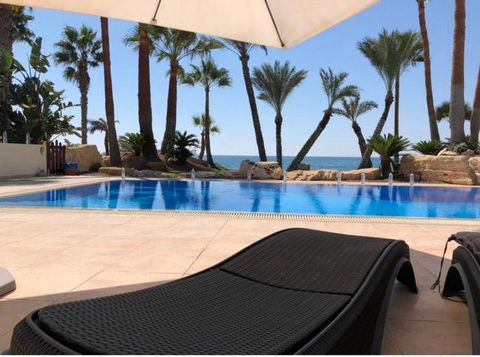 An exceptional villa on the beach is available for sale with a large garden area and a private over flow swimming pool with amazing sea views.