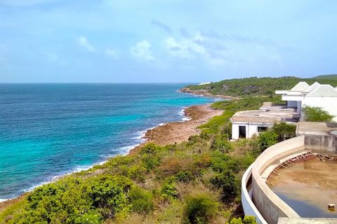 This exceptional property for sale in Brimegin, on Anguilla’s north coast, is a one-of-a-kind investment opportunity for a development company or even a large family looking for an exciting recreational project. The complex comprises a concrete frame of five seashore villas (approximately 55% ready), laid out over two rows with extensive grounds and unobstructed views of the Caribbean Sea, including Prickly Pear, Dog Island, and Anguilla’s invaluable coral reef.