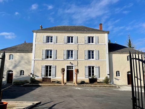 This majestic property has been beautifully renovated by the current owners in 2020 who have kept the authenticity of the house. Using TOP QUALITY materials, it is very stylish and brimming with character. Lavishly decorated, each room has high ceilings and very large dimensions. There are VAST outbuildings and a small house which is ideal as a letting opportunity or to welcome family and friends. There are 5 bedrooms in total each with en-suite bathroom with WC and shower over the bath. As you enter the gravelled courtyard through the original iron gates, you can’t help but be impressed by the ELEGANCE and stature of this house. Once inside you see how high the ceilings are and how the large rooms are perfectly proportioned offering extremly practical living space throughout. Coming in through the entrance hall you find the dining room to the left and to the right a stunning fully fitted kitchen with central island. This leads off to the sitting room where, via a staircase you access bedroom 1 with en-suite. Another staircase next to the dining room leads up to a long landing where there are 2 further bedrooms with en-suite bathrooms and a laundry area. Up to the second floor you find the MAGNIFICENT suite with very spacious bedroom, en-suite bathroom and large walk-in wardrobe. To the left of the house is the self-contained one bedroomed house, equally beautifully renovated with it’s own independant front door. In the courtyard there is separate building which has been converted to a studio with stage and bar. Perfect for entertaining or renting as a yoga/craft studio for example. To the other side is a garage and barn, both IMMENSE in size. The land at the back and side is mainly laid to lawn with some trees and is completely enclosed. There is also a small paddocked area. Heating is via electric radiators and the individual drainage system conforms to current regulations. A UNIQUE and quirky property that has been lovingly restored and now seeking a new owner. VIDEOS AND VIRTUAL VISITS AVAILABLE ON REQUEST !!