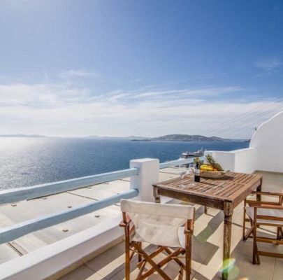 Maisonette with sea view, minimal design, furnished with excellent taste, has two bathrooms, sitting area, two bedrooms and terrace with excellent sea view of the bay of Agios Stefanos.