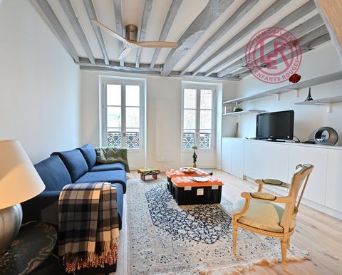 In an old building facing the Carreau du Temple, apartment on the 3rd floor, not overlooked, consisting of a living/dining room, a kitchen, a bathroom with shower and toilet (washing machine ) a bedroom overlooking an ultra-quiet courtyard, sold with a cellar. Recently renovated, this property combines comfort and perfect optimization with the charm of the old: slatted beam, as well as a location in the heart of the coveted sector of the Marché des Enfants Rouges Features: new solid oak parquet, fully equipped kitchen, designed made to measure, 7 double glazed wooden windows, wooden shutters in the bedroom,…