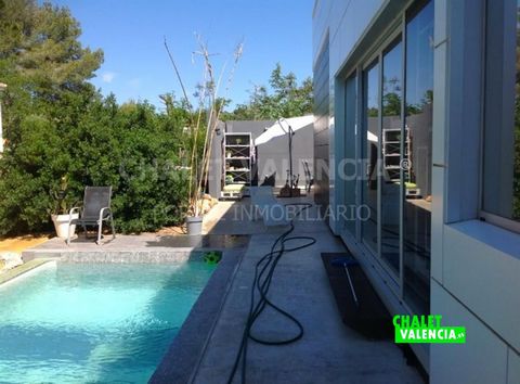 Villa with modern design, 30 minutes by car from the city of Valencia, in the municipality of Alberic, with Metro service to Valencia. The plot of land has 2600m2, with beautiful views of the mountains, surrounded by villas with large plots, which offers us areas with great privacy. Pool, barbecue, natural garden in the Mediterranean style and area with printed concrete at the entrance for vehicle entry. The house has 160m2 built on 2 floors, in 2013, with 3 bedrooms, 1 study, 1 office, 2 bathrooms, kitchen and living room with large windows.