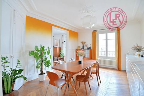 Carreau du Temple, rue de Franche Conté. On the 4th floor without elevator of a beautiful condominium built in 1884, magnificent apartment tastefully redone. It consists of an entrance, a living room with a functional fireplace, a dining kitchen, two large bedrooms and a bathroom with walk-in shower and bathtub, dressing room, plenty of storage space, separate toilet. Good quality (point d’Hongrée parquet, moldings), sought-after location, calm and bright.