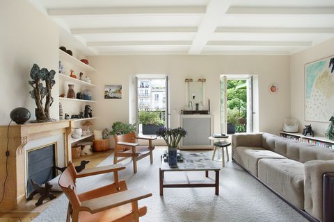 The apartment comprises of a large living room with a working fireplace opening onto a terrace with open views of private parks and quintessentially Parisian architecture, an adjoining dining room (or a second bedroom), bedroom with ample built-in storage opening onto a terrace, fully equipped kitchen and a bathroom.