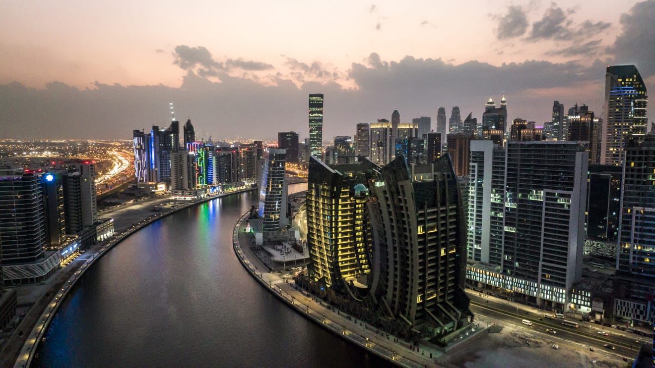From J One it takes roughly eight minutes to drive to Dubai Mall, 20 minutes to Palm Jumeirah, 19 minutes to Burj Al Arab, and 24 minutes to The Walk JBR. Dubai International Airport (DXB) is roughly 15 minutes drive and the new Al Maktoum International Airport is roughly 42 minutes drive. All durations are calculated by Google Maps and assume the fastest route in typical traffic conditions.
