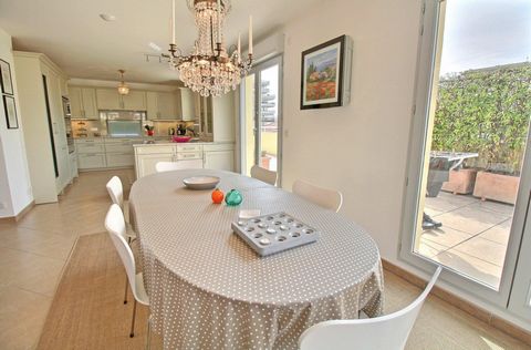 In a luxury residence, a very nice apartment of 150m2 with a large roof terrace of about 125m2, ideally located in the center of Juan les Pins, 5 minutes walk to the beaches!