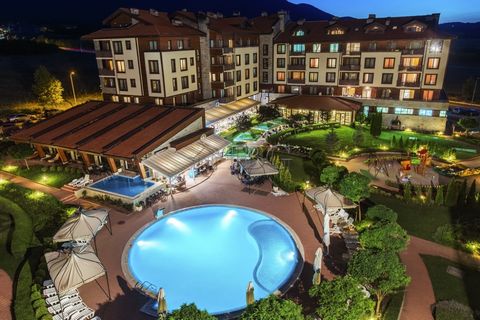 This spacious and bright, beautifully equipped, fully furnished, two bedroom apartment is situated on the 2nd floor in the fully established complex Murite (former name White Fir Valley Resort). The complex is located at the foot of Pirin Mountain, only 6 km. from Bansko, 3 km. from Razlog and 300 meters from stunningly designed Ian Woosnam golf course.
