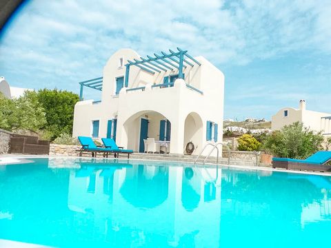 2-minute walk to uninterrupted views of the caldera & the Aegean and 5 minutes’ drive to the gorgeous Black Beach as well as to the Red Beach, this fabulous detached/fully furnished/equipped villa of 106 sqm has a large infinity-shaped completely private swimming pool! The property is located on the edge of the hillside village of Akrotiri and the village can be reached by foot in 5 minutes! The village has 2 supermarkets and several tavernas.