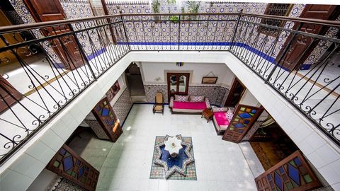 Charming riad in the heart of the Medina of Marrakech, in a lively shopping area. Composed of 3 bedrooms, 2 living rooms and a dining room as well as a traditional patio and a terrace overlooking the myriads of surrounding roofs. This riad has everything to seduce one who desires to live in an authentic and colorful way.