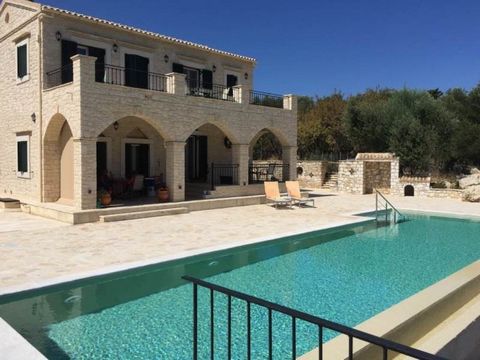 The villa was built in Venetian style with elements from classical Greek antiquity such as frames, gables, eaves above the window. The double-glazed windows have aluminium shutters.The villa is surrounded by beautiful stone walls, has an electric gate, a driveway and a swimming pool of more than 60 sqm. There are 30 old olive trees and two old oaks on the Great Land.