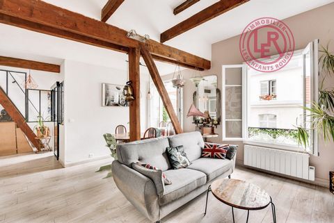 In a charming condominium on RUE MESLAY, on the 3rd floor, very nice apartment of 57m2 with the charm of the old, beams and fireplace. In SOUTH exposure, the apartment benefits from a very beautiful light. CROSSING, it consists of an entrance with storage, which opens onto a living-dining room with fireplace, a bedroom overlooking the courtyard and a second facing the street, an independent kitchen, and independent WC. Accessible by stairs, the bathroom with WC is located upstairs. Also on the 4th floor, a service room of 5mq converted into an office. This apartment benefits from a very NICE VOLUME with a large…