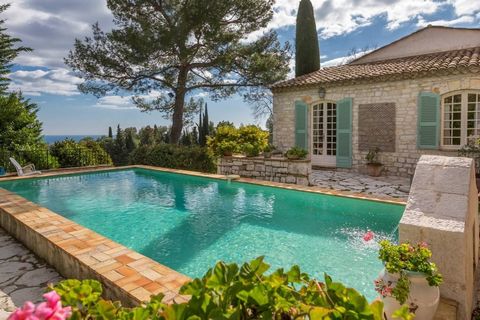Cozy Provencal stone house located within the prestigious domain of “Les Hauts de St. Paul” boasts beautiful views over the old village of Saint Paul and the sea as a backdrop. The villa was built by the renowned architect and the interior offers large, bright and charming volumes. It is composed as follows: